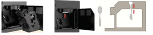 3. Воронка для кофе засорена молотым кофе. Очистите воронку для кофе. • Извлеките варочную группу и очистите воронку для кофе с помощью ручки ложки. • Если воронка для предварительно помолотого кофе отсутствует, вставьте ручку ложки в трубку снизу.